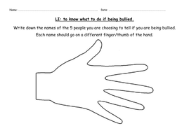 Helping Hand Anti-Bullying Sheet SB1079 A simple worksheet for children to write the names of five people who can help them if they are being bullied on each. Help children be anti-bullying at KS2. Using worksheets such as this.