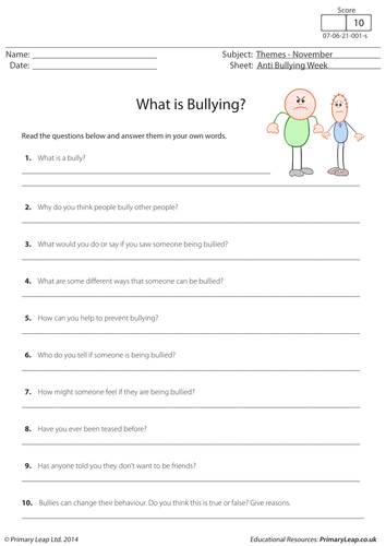 These worksheets are designed to support teaching on Anti-Bullying Week or can be used to support teaching on the topic of bullying at KS2. Anti Bullying Week Bundle. These KS2 worksheets are designed to support teaching on Anti-Bullying Week and can be used to support general teaching on the topic of bullying.